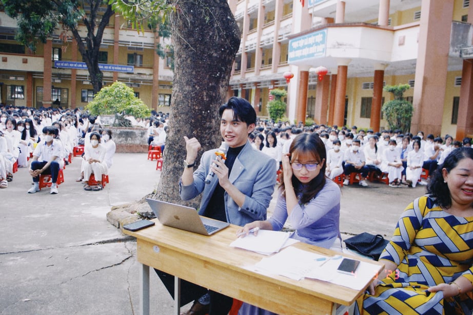 Đồng thời là MC cho buổi lễ trưởng thành cuối cùng của các em tại mái trường cấp 3 THPT Định Quán.